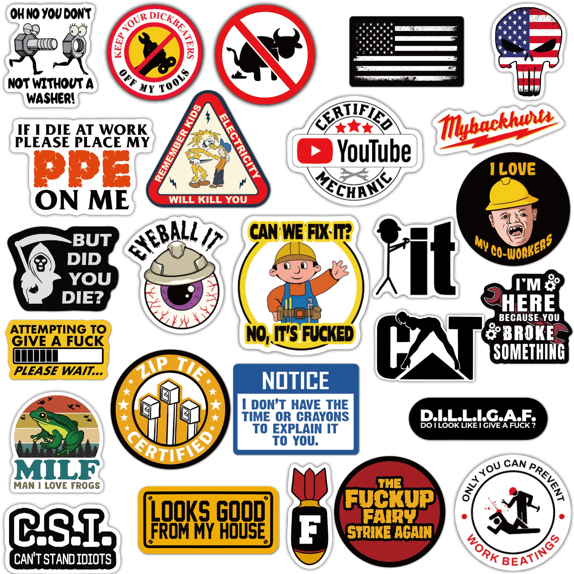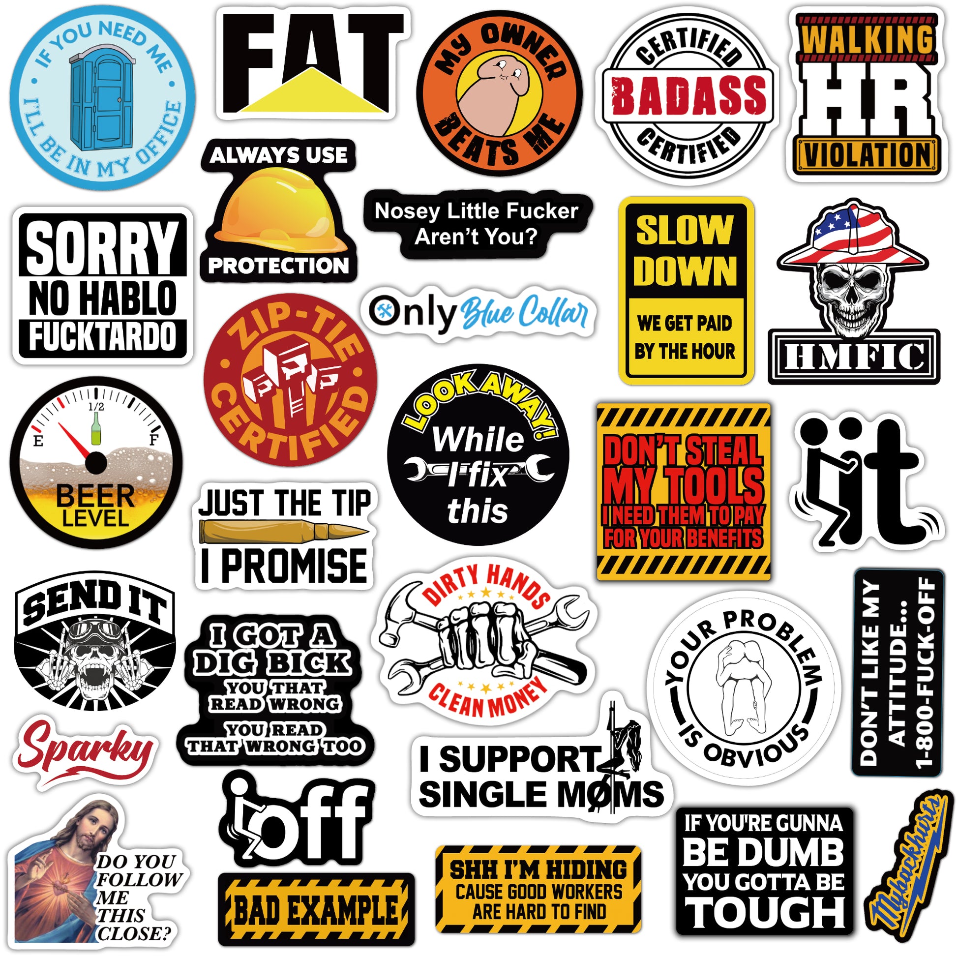 - 😎Funny Stickers for adults, Excellent gifts. They're the perfect complement for union meetings, toolboxes, welding apparatus, hard hat add-ons, electrician's equipment, pipefitting tools, logging implements, HVAC machinery and devices, gardening tools, lunch boxes, lockers, and beyond!